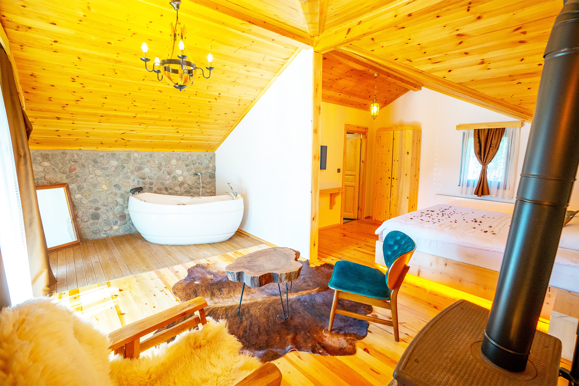 abant delüks bungalov (veranda, şömine, jakuzi)
